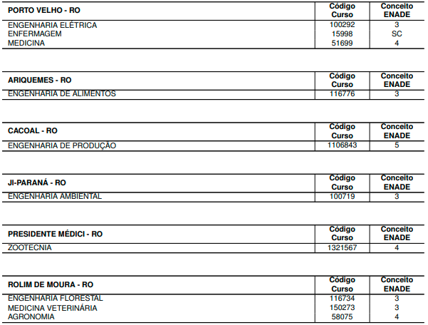 No que se refere à Fundação Universidade Federal de Rondônia (UNIR), a avaliação aconteceu nos campi de Ariquemes, Cacoal, Ji-Paraná, Presidente Médici e Rolim de Moura.