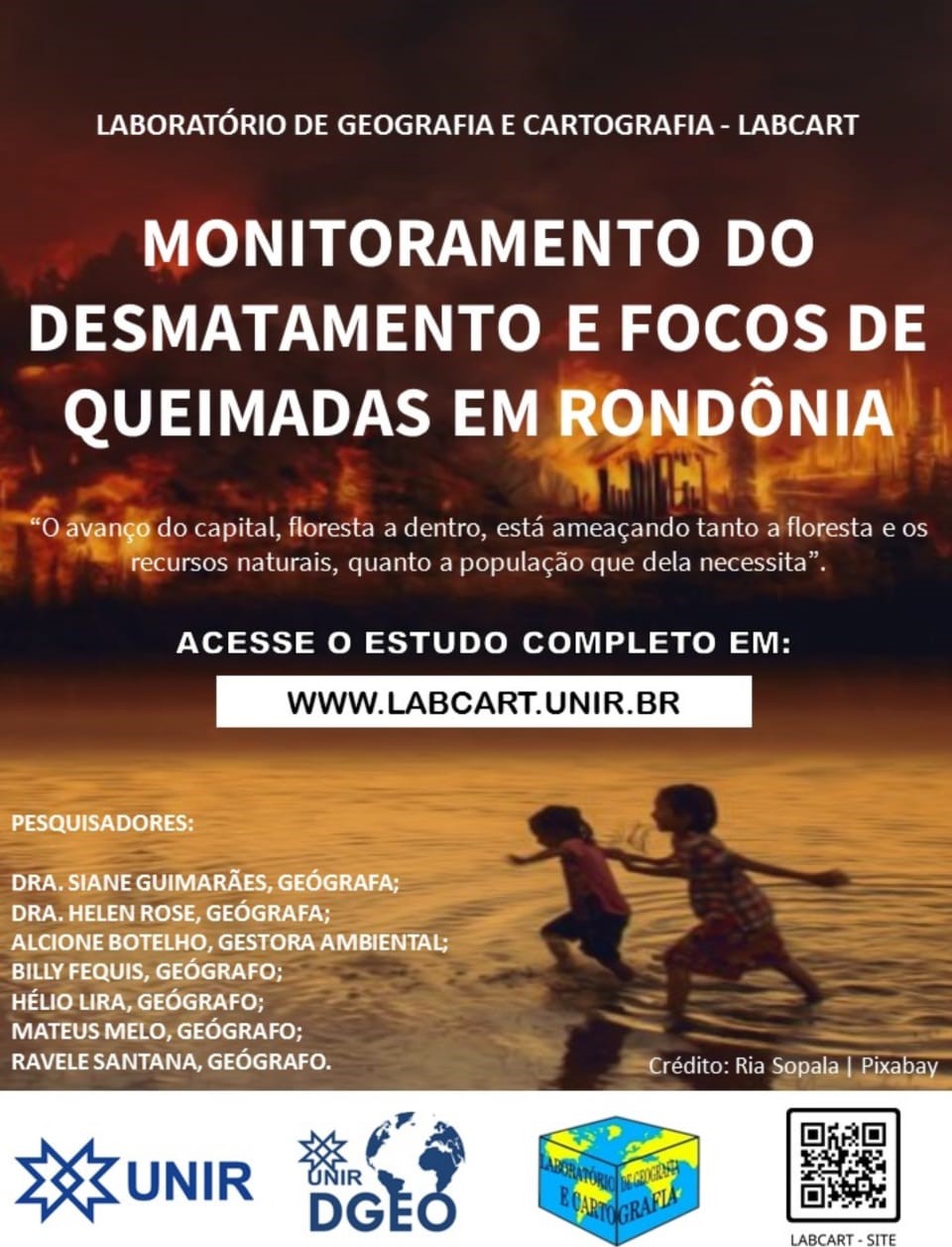 O Laboratório de Geografia e Cartografia (LABCART), do Departamento de Geografia da Fundação Universidade Federal de Rondônia (UNIR), sob a coordenação da professora doutora Siane Cristhina Pedroso Guimarães, apresenta painel interativo com informações de desmatamento do Estado de Rondônia desde o ano 2000 até os dias atuais, e um comparativo do desmatamento e dos focos de queimada entre o mês de janeiro a outubro dos anos de 2019 e 2020.